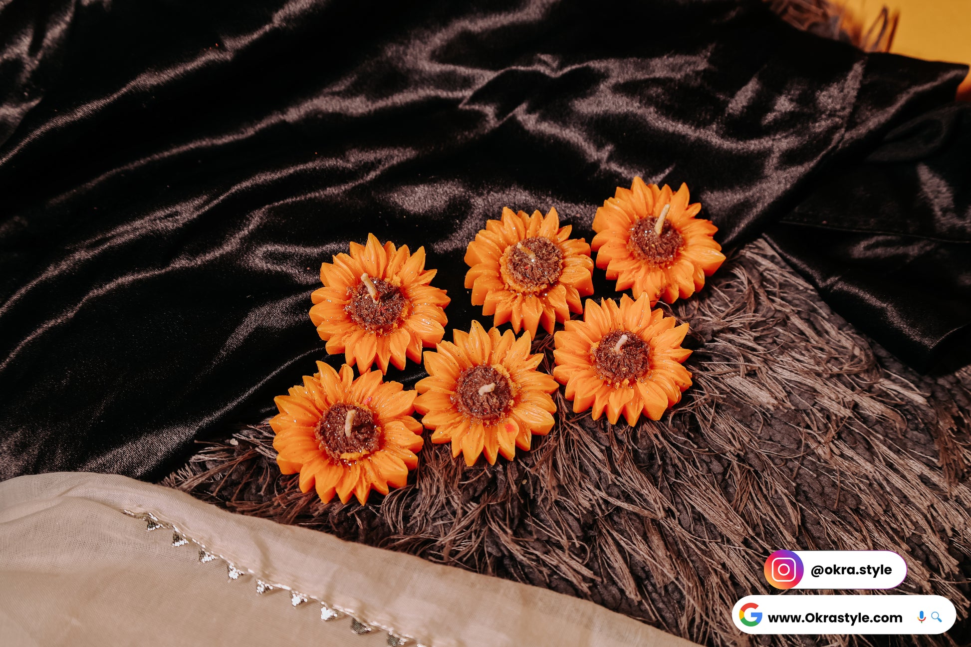 Sunflower scented candle in pack of six by Okra Style Presenting the fresh aroma of flower in a pack form .